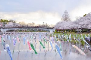 春になると、館林市の鶴来川の河川敷では、春風が吹き、大小数千の鯉のぼりが青空に映え、川の両岸では桜が満開で、花や散った桜、色とりどりの鯉のぼりが目に入るという光景が見られます。