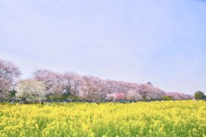 東京からほど近い場所にある「権現堂桜堤」は、約1kmの道のりに約1,000本のソメイヨシノが咲き誇り、その周りには菜の花が広がる埼玉県の人気お花見スポットです。 鮮やかな黄色と恥ずかしげなピンクが混ざり合い、鮮やかでありながら目立たない、貴重なお花見スポットです。